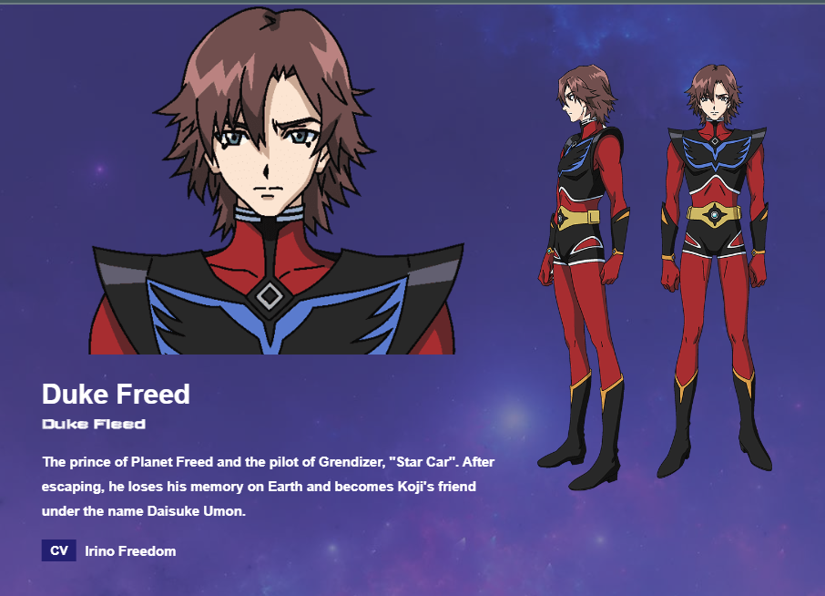 أما عن دوق فليد فقد تم الاحتفاظ بكونه أمير كوكب فليد، طيار جريندايزر، ولي العهد، الأخ الأكبر لشقيقة واحدة هي ماريا، لكن تم تقريب الفارق الزمني بينه وبينها ليبدو كسنوات قليلة جدًا وليس كما ظهرت في المسلسل، وهنا يأتي السؤال: إن كان دايسكي قد وجد على الأرض فاقدًا لوعيه، فكيف ستنجو ماريا؟ إن كانت ماريا مقاربة لعمر دايسكي، وإن كانت تحمل قدرات خارقة كما ذكر عنها – التنبؤ بالمستقبل وقيادة السفن الفضائية – فربما ماريا قد وصلت معه للأرض، ثم… هنا يأتي الجزء الأكثر إمتاعًا.