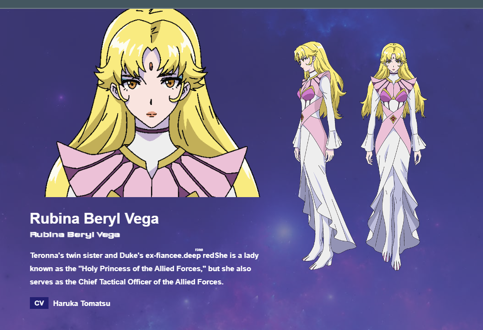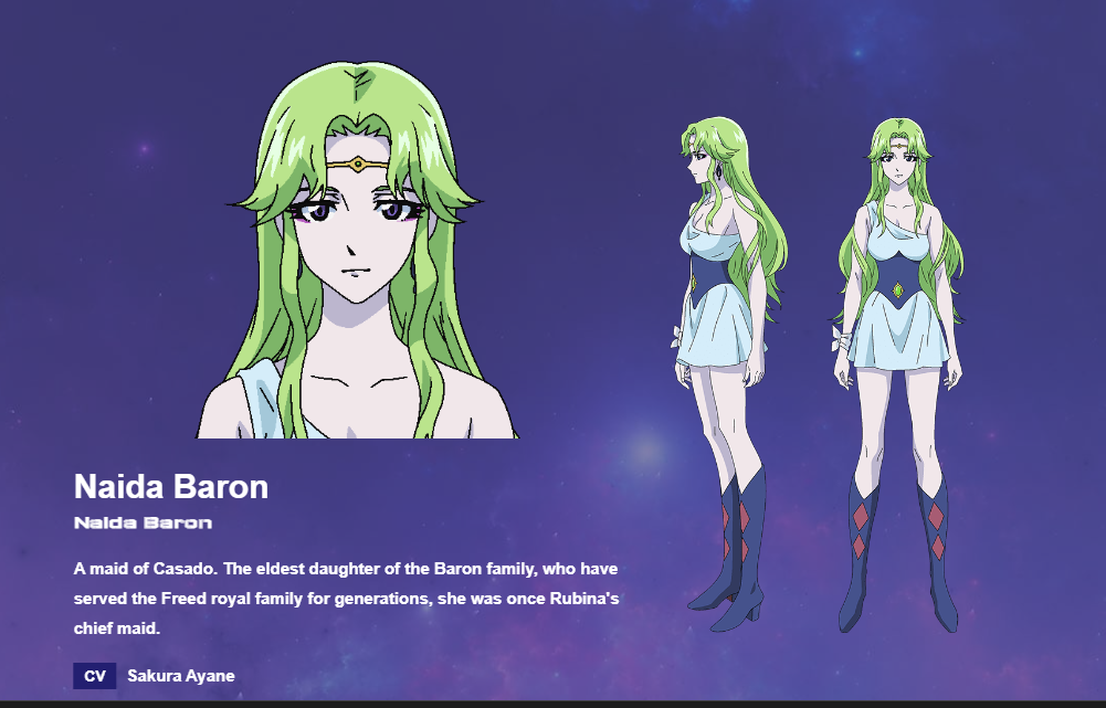 دعونا إذن نبدأ بالشخصيات من الفضاء الخارجي، سنجد أن لدينا دوق فليد وماريا من كوكب فليد كما هو وارد في القصة الأصلية، وسنجد روبينا وتيرونا توأمتي فيجا على