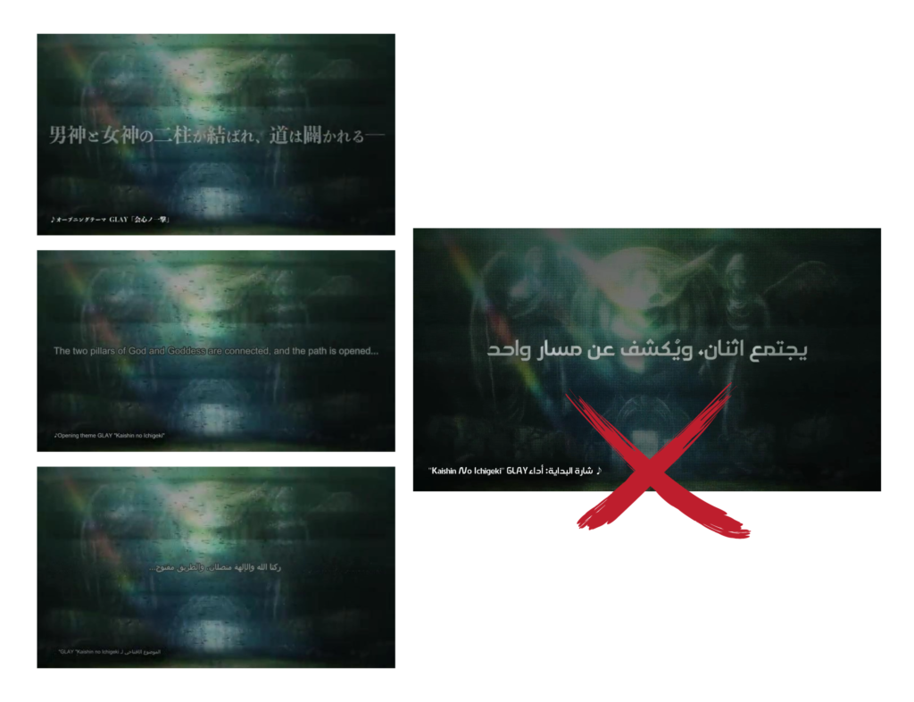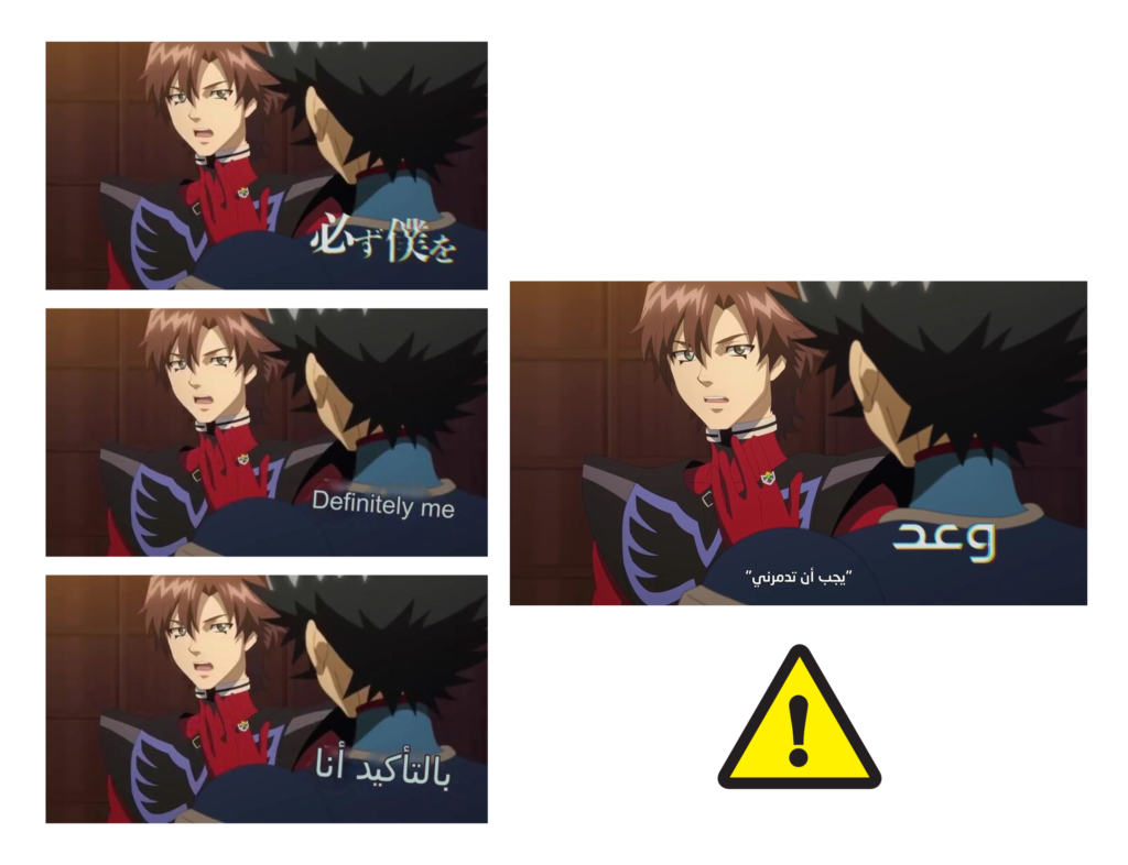 زار دايسكي وكوجي الجزيرة حيث توجد هيكارو وظهرت على الشاشة جملة بالغة الأهمية وتمت ترجمتها للعربية بتحوير حفاظًا على الثقافة العربية مما يضعنا أساسًا في مأزق تحريف القصة للأسف، لكن دعونا نستعرض الجملة باليابانية والإنجليزية والترجمة الفورية بالعربية ونقارنها بترجمة شركة مانجا للإنتاج: