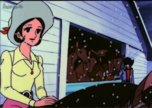في ذلك اليوم لم نتمكن فعلًا من تدريب الجياد كما ينبغي، لقد هبت عاصفة ثلجية قوية وتبعها ظهور يوفو متوحش، لذا ساد الهرج والمرج وارتبكت الخيرل وسقط دايسكي من على ظهر حصانه لكنه لم يُصب بسوء.. شكرًا لله! فقدنا جورو وساندي أيضًا لكن أبي وكوجي تمكنا من إيجادهما.