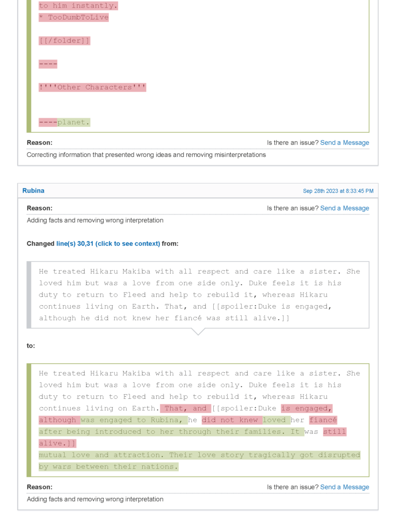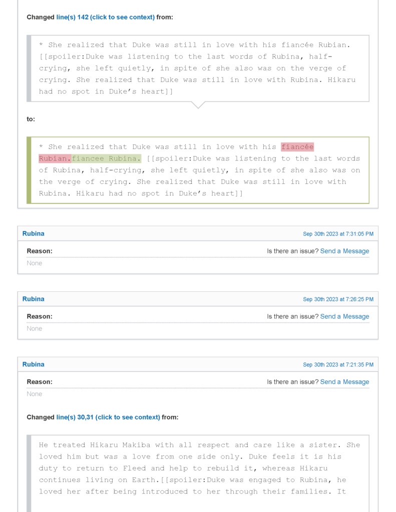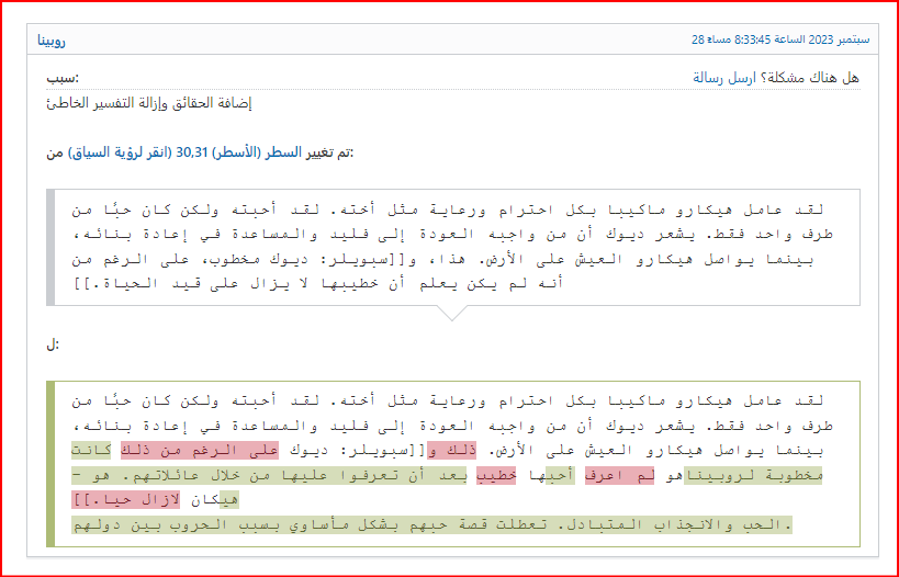 بعد نشرنا للموضوع وتحديدًا الاستعارات المتعلقة بشخصية هيكارو ماكيبا – مترجمة بناء على طلب متابعينا – لاحظنا تعرض الموضوع الأصلي للتشويه والتحريف المتعمد، حيث تم طمس شخصية هيكارو لصالح شخصية الأميرة روبينا فيجا.