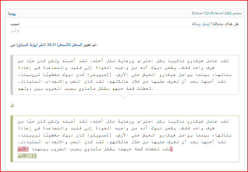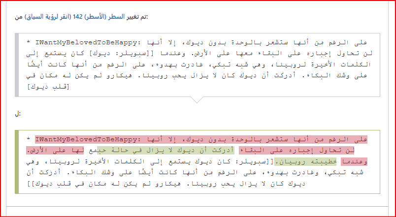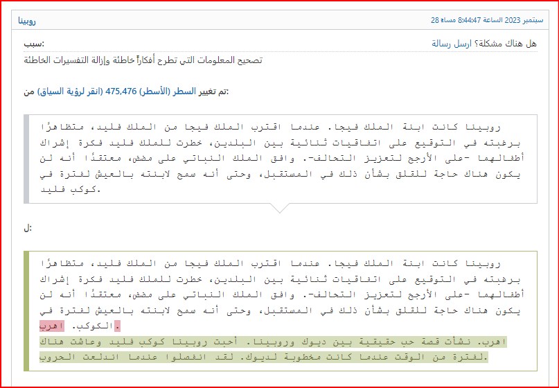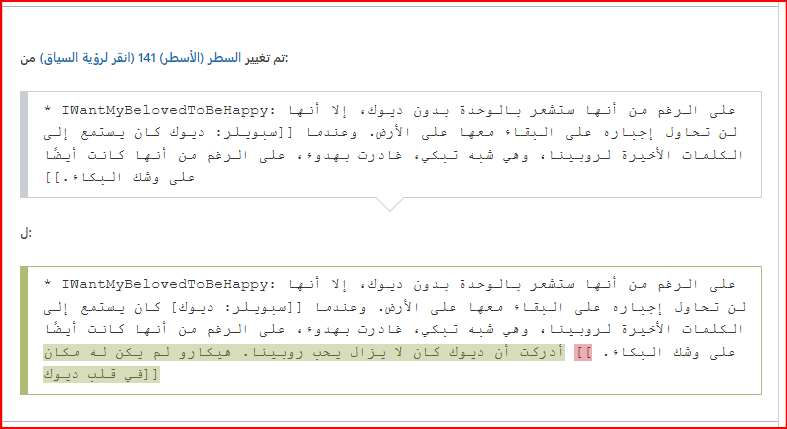 - تم التعديل على استعارة I Want My Beloved to Be Happy في محاولة صريحة لفرض رأي من قام بالتعديل وهو حب دايسكي لروبينا.