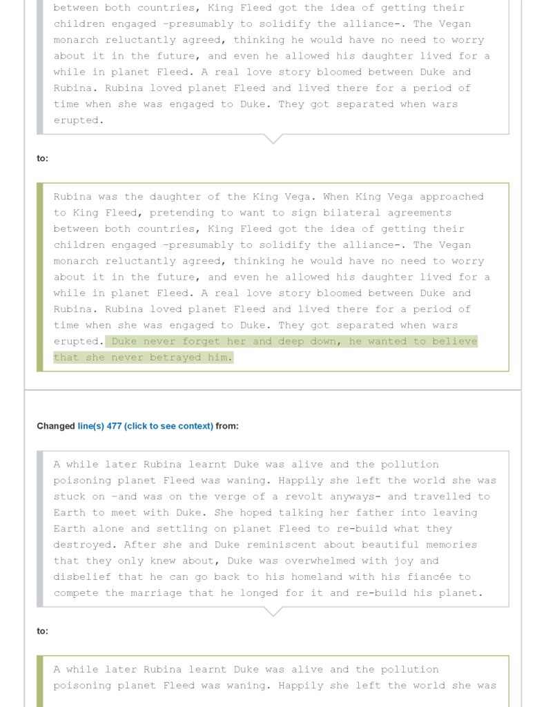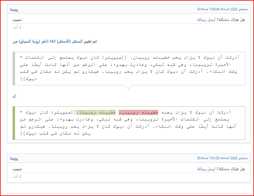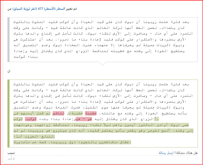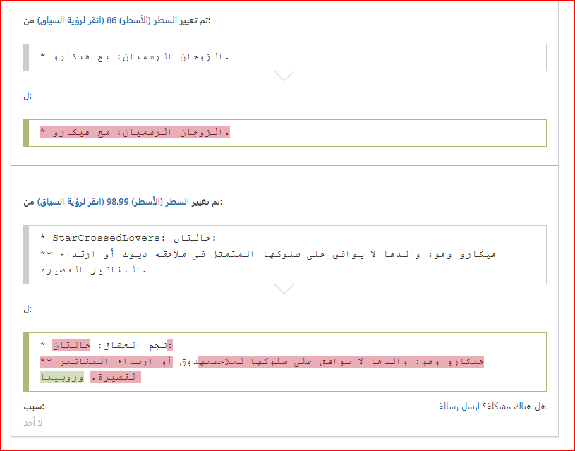 لكن هذه الأسباب لا تتوافق مع التعيدلات بأي حال من الأحوال، لأن من قام بالتعديل يدعي إضافة حقائق بينما هو يضيف رأيًا فقط في كل مكان ممكن من الموضوع، يحذف شخصيات بالكامل، يحذف استعارات ولا يطورها أو يضيف إليها، ويبرر ذلك بأنه يضيف معلومات ويزيل لبس وادعاءات خاطئة.