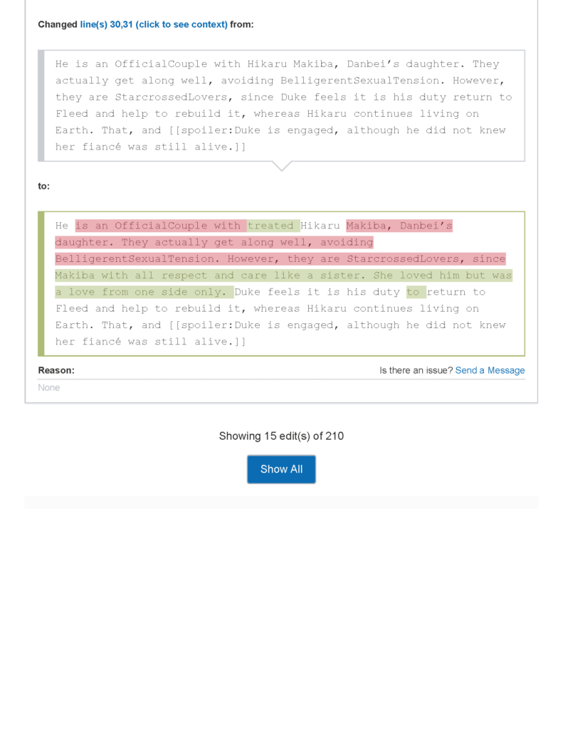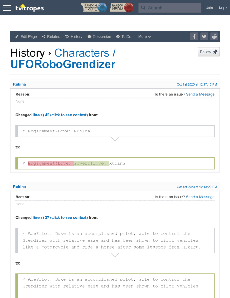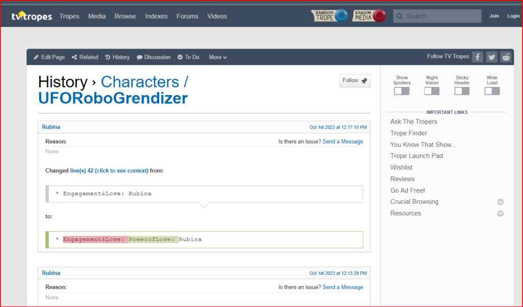 هذا السؤال جوهري ولا بد منه، الموضوعات على TV Tropes وغيره من المواقع بحاجة لجهود الجمهور لبنائها وتنقيحها والإضافة إليها، لكن التعديل الذي تم على هذا الموضوع تحديدًا تحيط به علامات الاستفهام والشك، والأسباب هي: