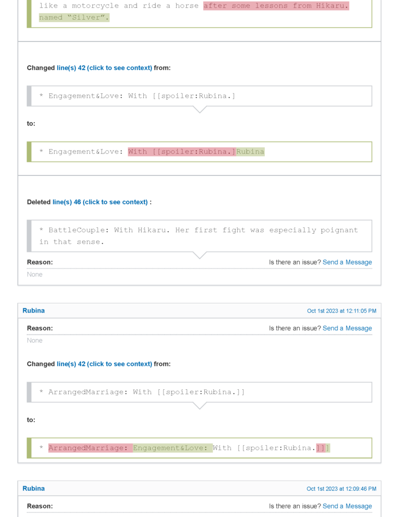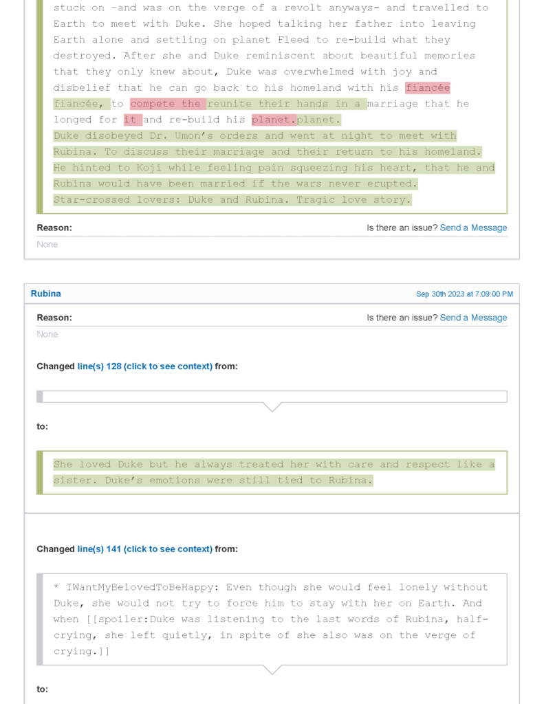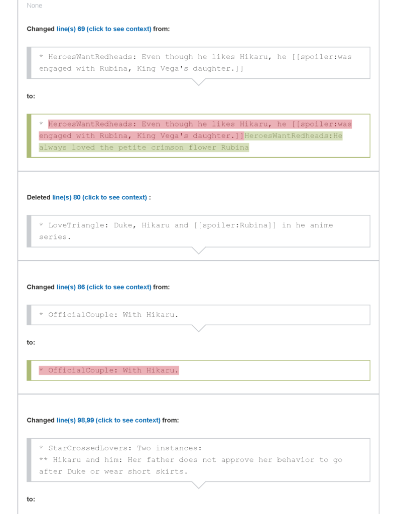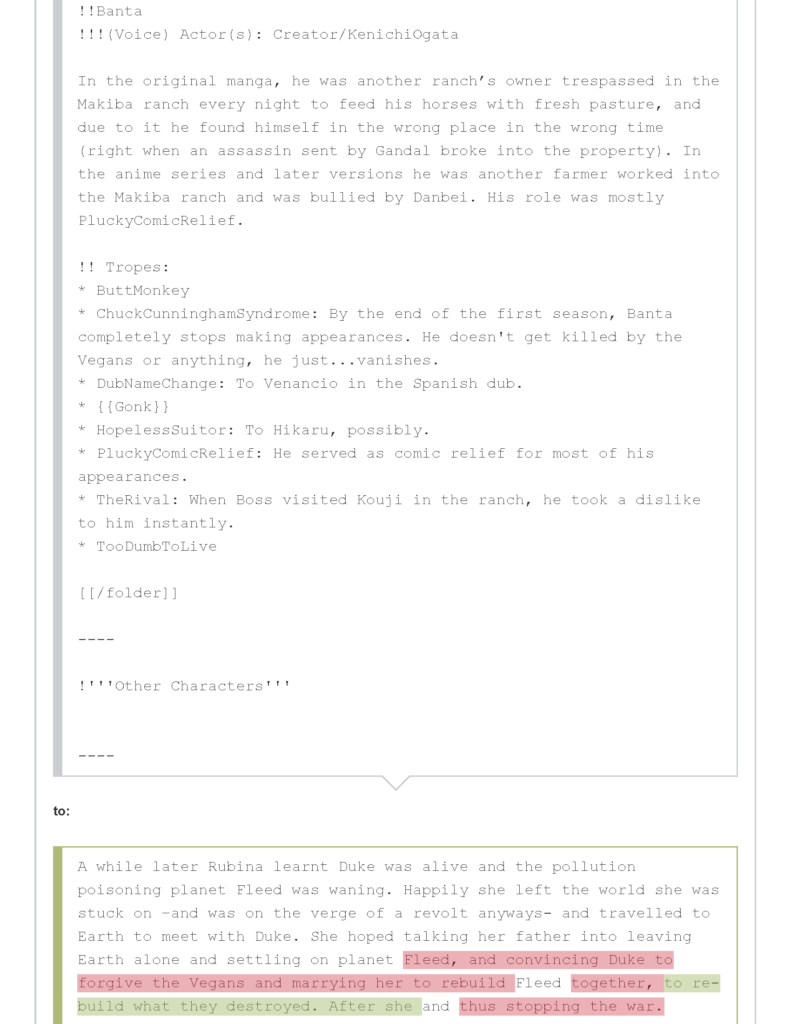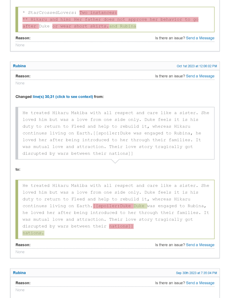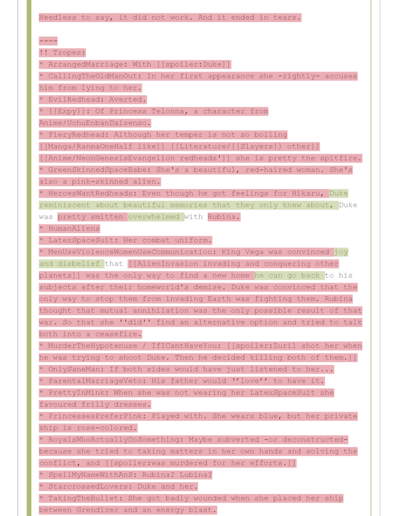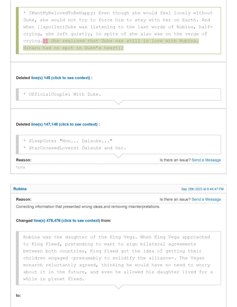 - في المقابل تم حذف كل ما كتبه صاحب الموضوع الأصلي تقريبًا عن الأميرة روبينا واستعاراتها الدرامية، والاكتفاء باستعاردة Expy و Star-Crossed Lovers مع تعديل الأخيرة.